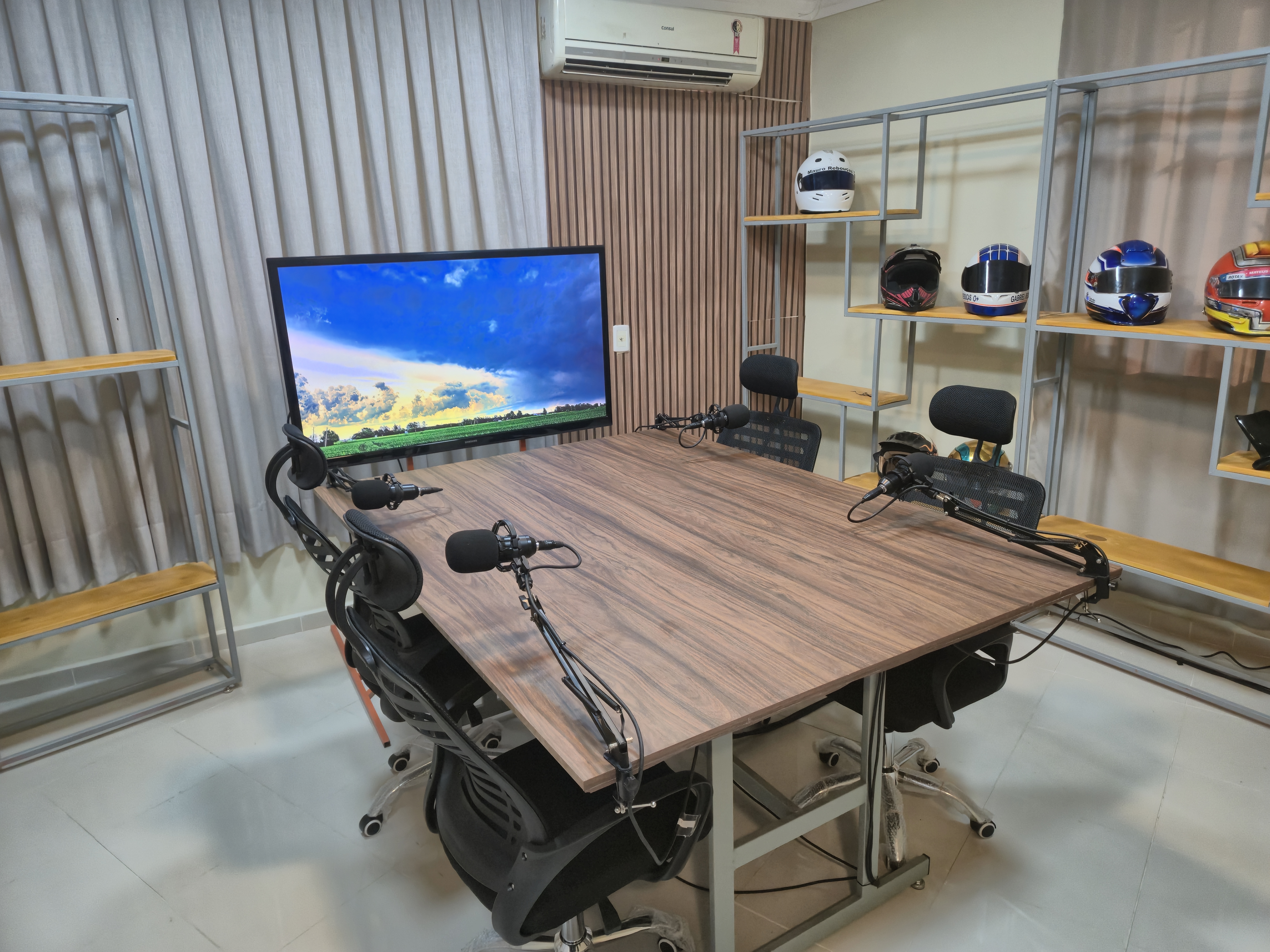 Um ambiente completo para gravações, entrevistas e conteúdos com qualidade de áudio e vídeo.